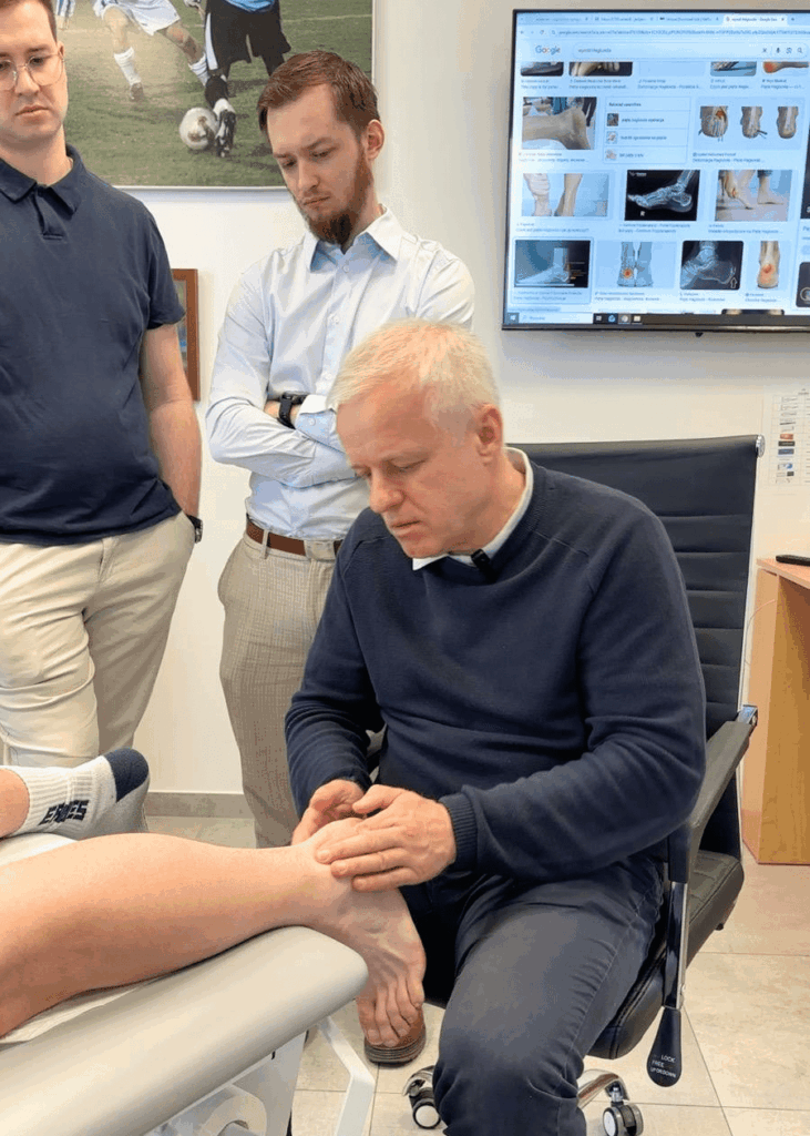 Istotnym elementem tej części było dzielenie się przez dr. Jaroszewskiego własnym doświadczeniem klinicznym. Uczestnicy mieli okazję poznać jego podejście do pracy z pacjentem oparte na wieloletniej praktyce w ortopedii sportowej, a także zapoznać się z konkretnymi przypadkami klinicznymi – zarówno z pracy w szpitalu i klinice, jak i z doświadczeń zdobytych podczas współpracy z reprezentacją Polski w piłce nożnej.